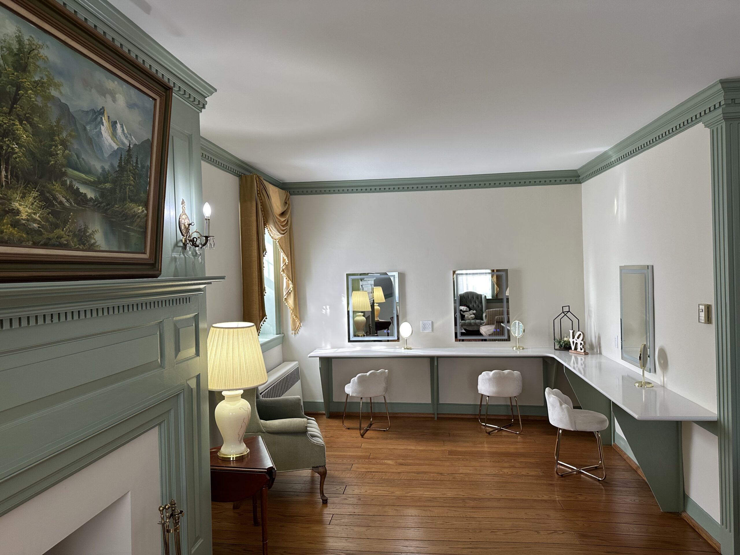 Located within the Farm House. The Bridal Suite is a fully functioning, full service suite for the Bride and all of her Bridesmaids to get ready for the big day.